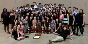 Happy members of Unionville High’s marching band take a moment to enjoy being named Grand Champions.
