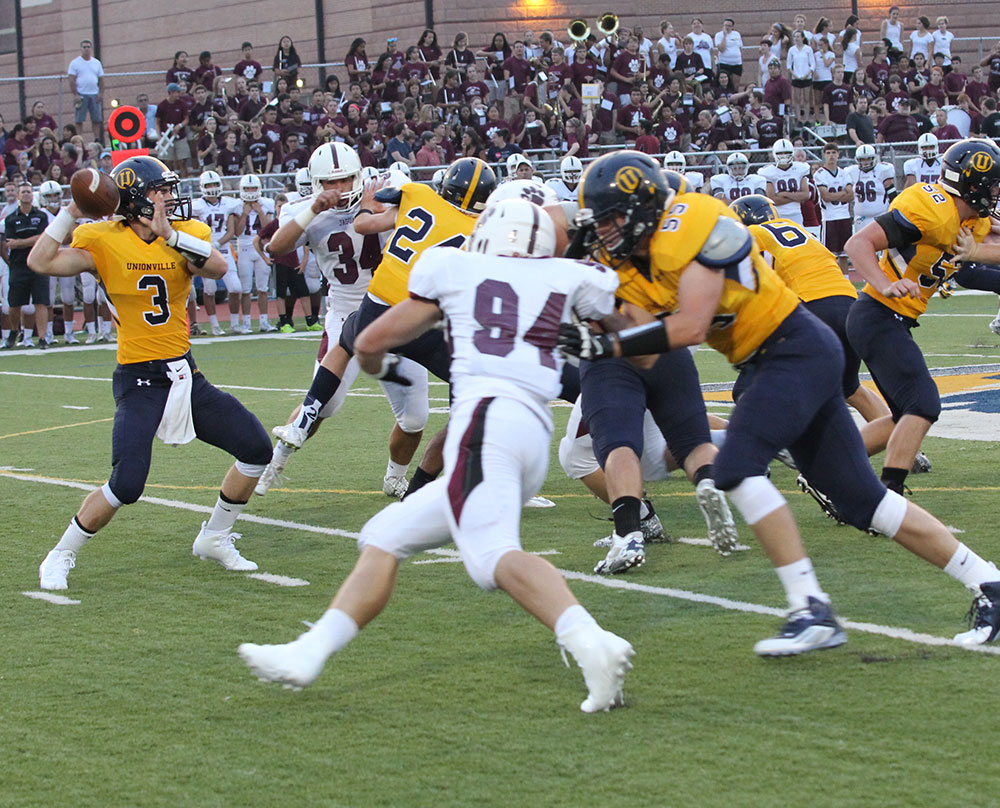 Despite some preseason suggestions that the graduation of strong-armed QB Alex Pechin would mean a bit more sedate, ball-control offense in 2015, Unionville started off with a bang and the hits just kept coming.
