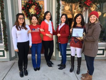 Staff at J & L Creative Nails and Owner Quynh Le with Becca Settle, Chairwoman of Downingtown Main Street Association.