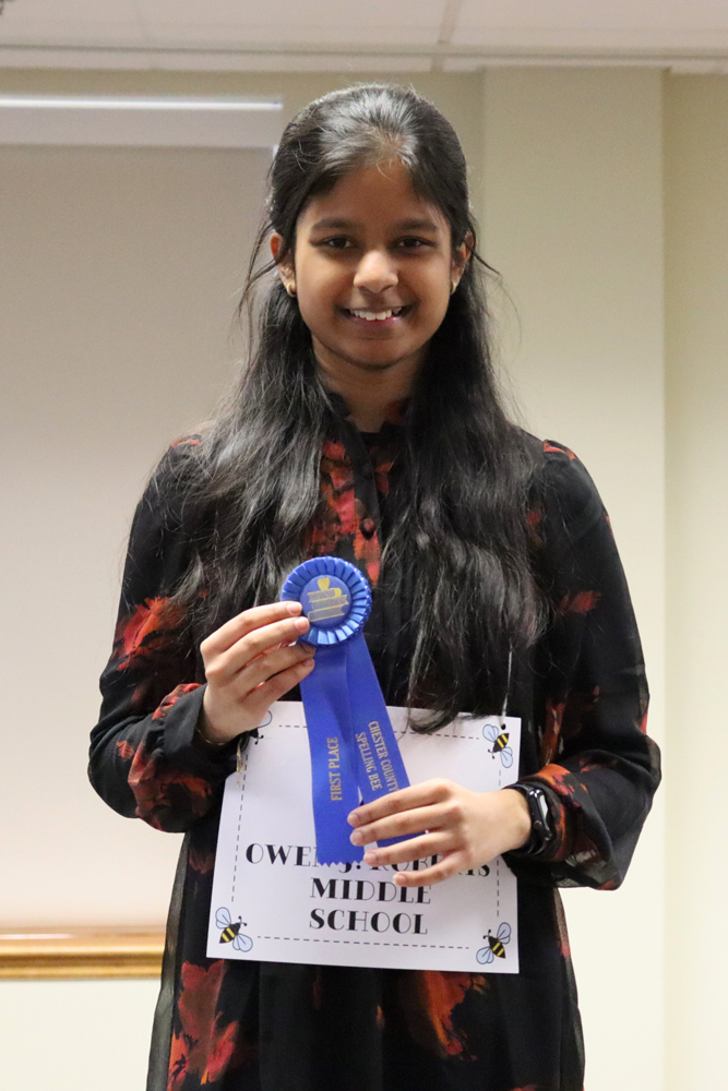 Disha Jain of Owen J. Roberts Middle School won first place in the 2025 Chester County Spelling Bee on Monday.