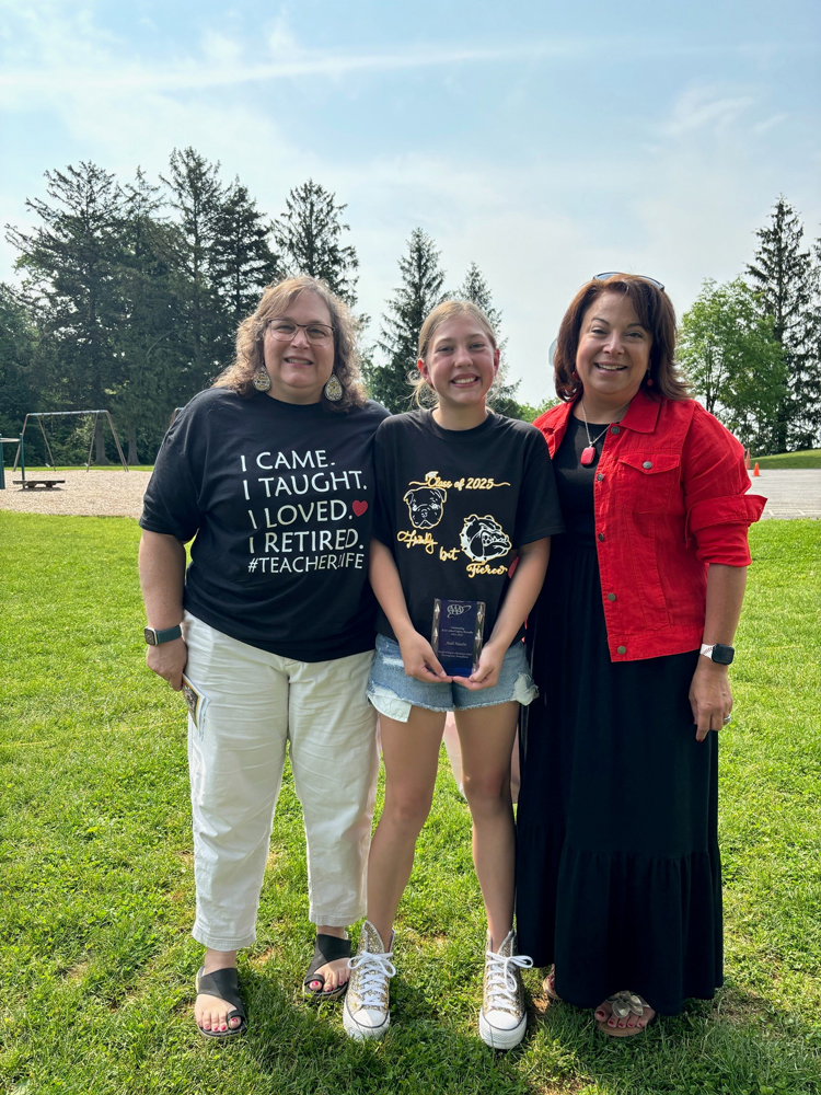 Left to right) Deb Rooney, Bradford Heights Elementary School Advisor; Andi Hardin, Bradford Heights Elementary School 2025 AAA Outstanding School Safety Patrol Award Recipient; Jana Tidwell, Manager, Public and Government Affairs, AAA Mid-Atlantic.