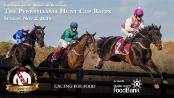 The Pennsylvania Hunt Cup (Pennsylvania Hunt Cup racecourse, Newark Road, Unionville, 484-888-6619, http://pahuntcup.org) is one of the oldest and most respected equestrian events in the Mid-Atlantic region. This year, the Hunt Cup will celebrate its 90th anniversary on November 2.