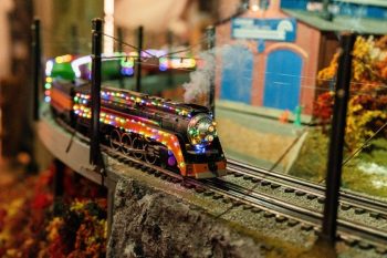 A dazzling array of both toy and scale model trains can be seen chugging through the varied scenery, including those made by Lionel, Williams, Atlas, Mike’s Train House, K-line and others. Interactive components are also incorporated into the display to allow for further engagement.
