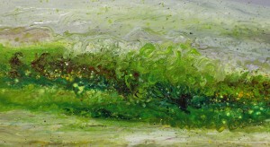 Ranging in size from large 6 foot wide canvases to smaller 20 inch square works, Kimberly Knorr tries to recreate the sensations that she feels when she observes nature. She is particularly connected to the Brandywine River. When I asked her what was it about the river that made it her muse, she said “the power, movement and life that comes out of the river… I want to put all that on my canvas.” Her canvases are layered with thick applications of acrylic paint that give a three-dimensional quality to her work.